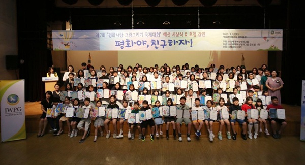 ㈔세계여성평화그룹(IWPG) 글로벌 1국(글로벌국장 강연경)이 지난 26일 서울여성플라자 아트홀 봄에서 제7회 ‘평화사랑 그림그리기 국제대회’ 예선 시상식 및 초청 강연을 개최했습니다.